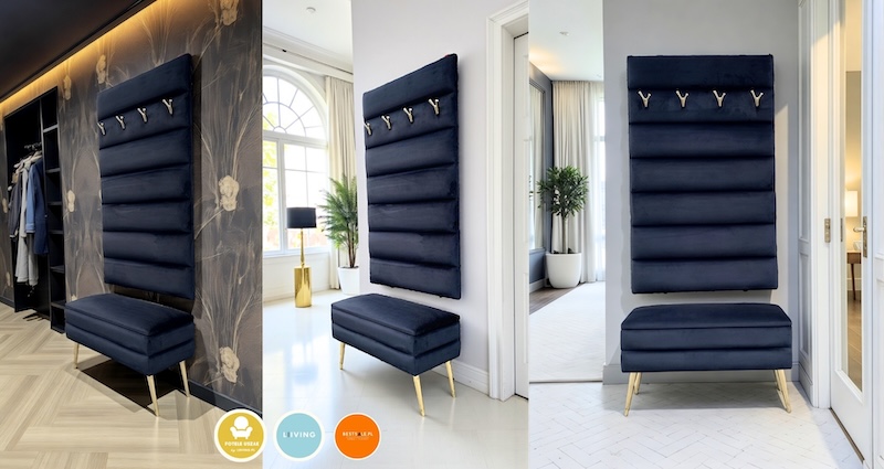 Garderoba z panelem uchwytami + elegancka pufa otwierana ze skrzynią w najróżniejszych kolorach do wyboru