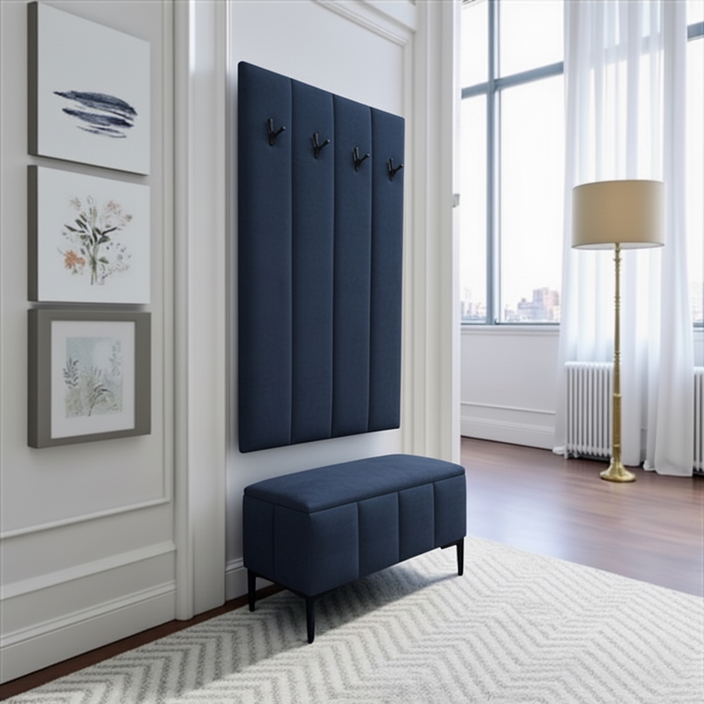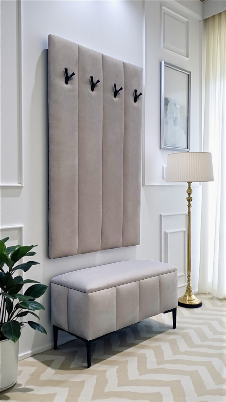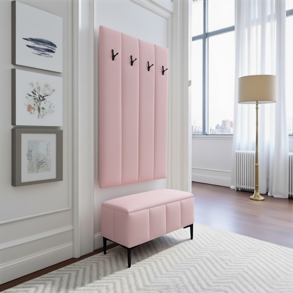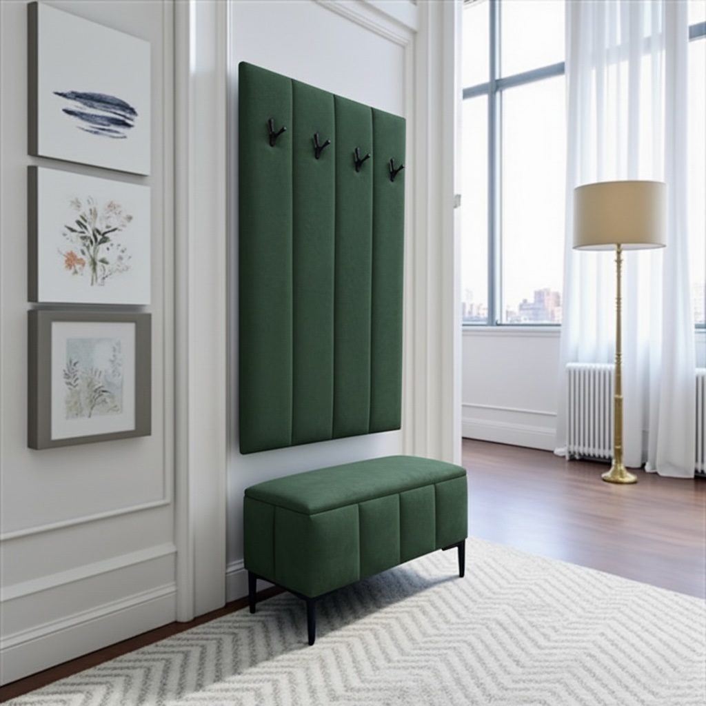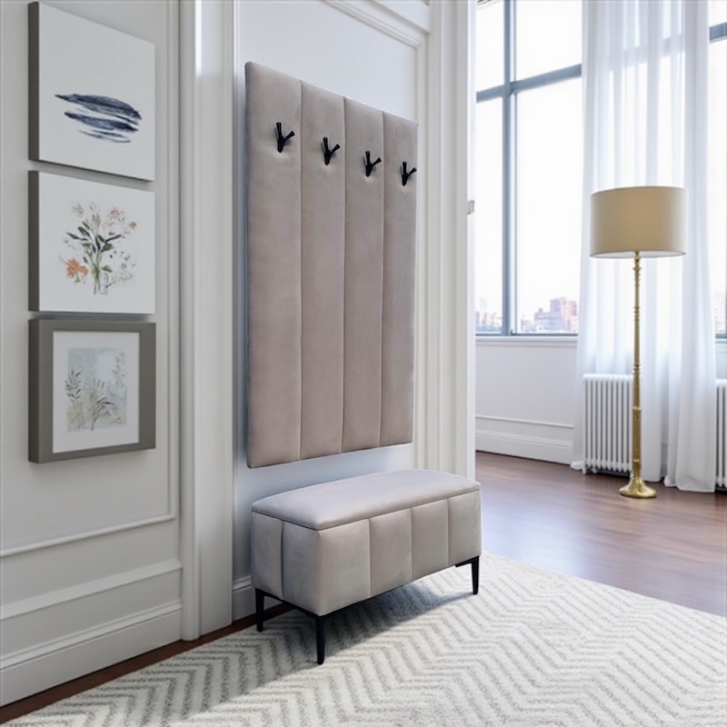 Garderoba z panelem uchwytami + elegancka pufa otwierana ze skrzynią w najróżniejszych kolorach do wyboru